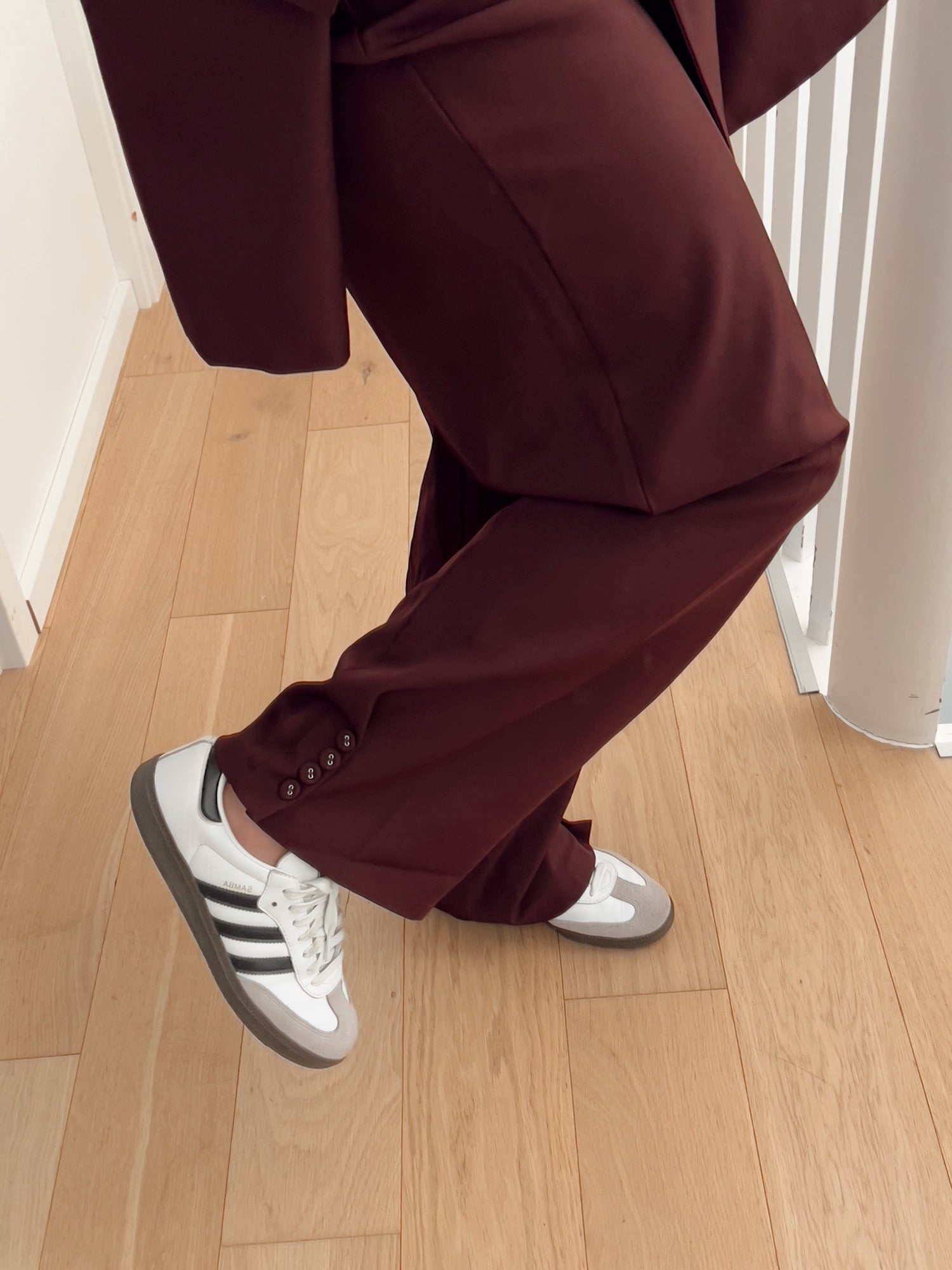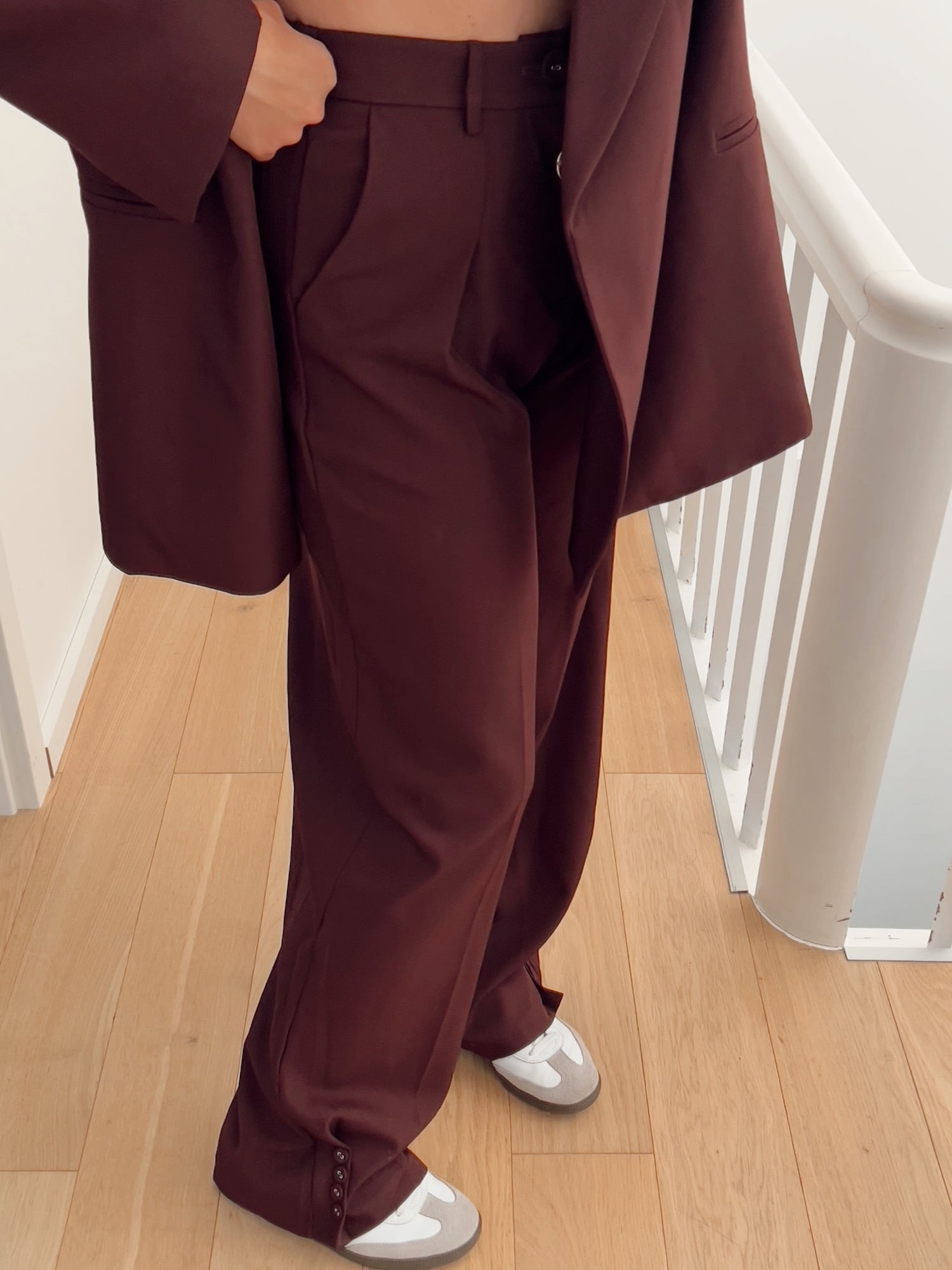 These fluid, suit-style pants are the ideal piece for an elegant silhouette without sacrificing comfort. With their loose, straight cut, they elongate the leg while offering a casual chic look. Its soft fabric with a perfect fall gives it a beautiful fluidity, while the high waist subtly structures the silhouette. We love its classic yet modern navy blue hue, perfect for an office look or a more fashionable total suit.
