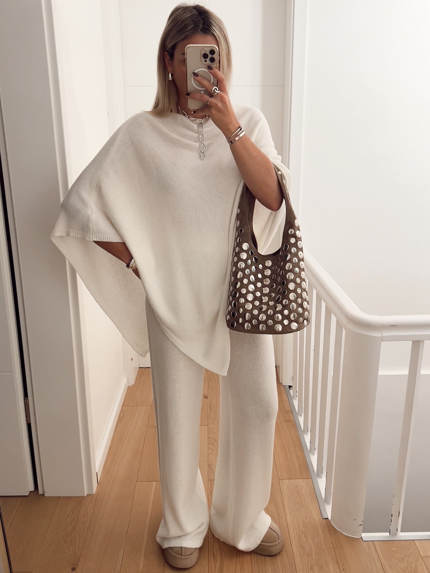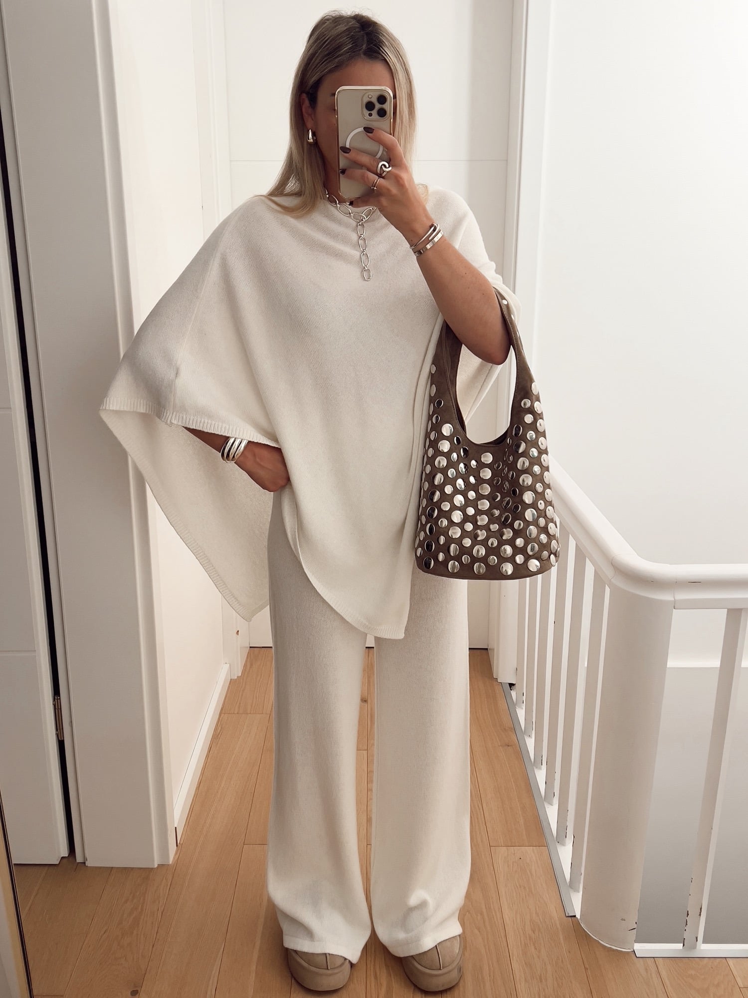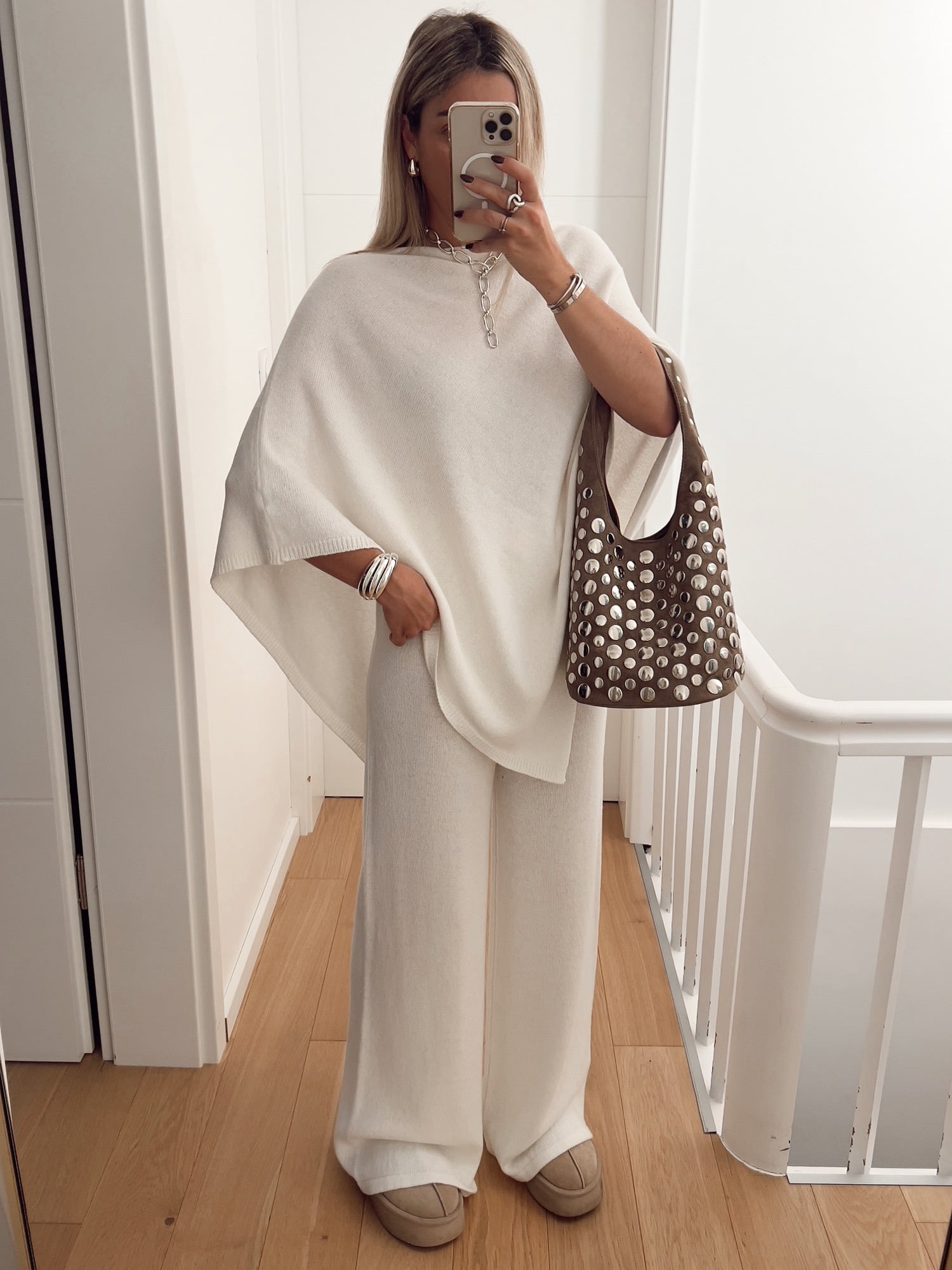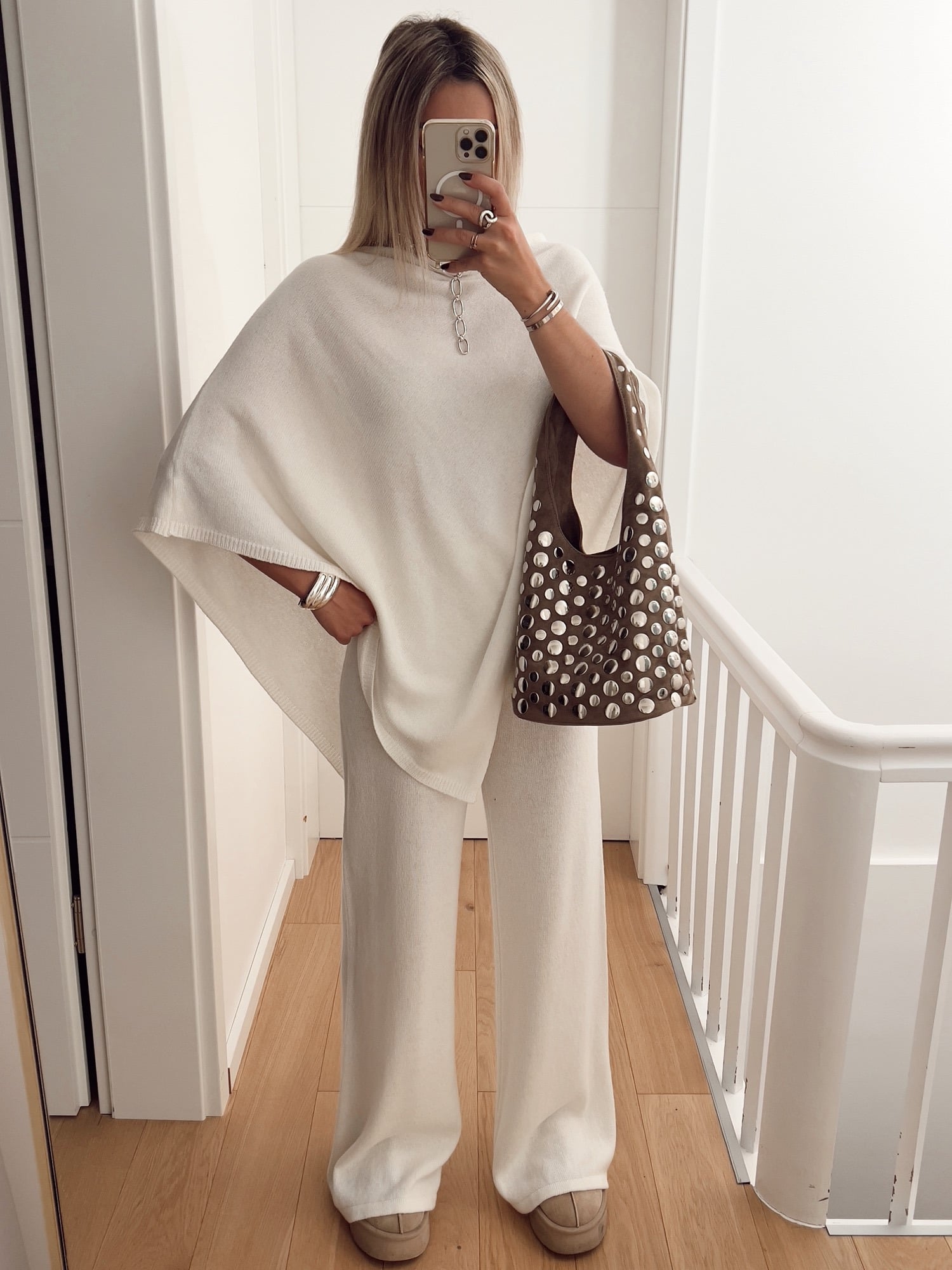 These knit pants combine absolute comfort with minimalist elegance. Their loose, flowing cut offers ideal freedom of movement, while their natural fall elongates the silhouette. Crafted in soft, luxurious cashmere, they provide the perfect cocooning sensation for chilly days. Its elasticated waistband ensures a comfortable fit, while its sober, refined style means it can be paired with a coordinating knit sweater or a dressier shirt. A must-have for a chic and cozy wardrobe.
