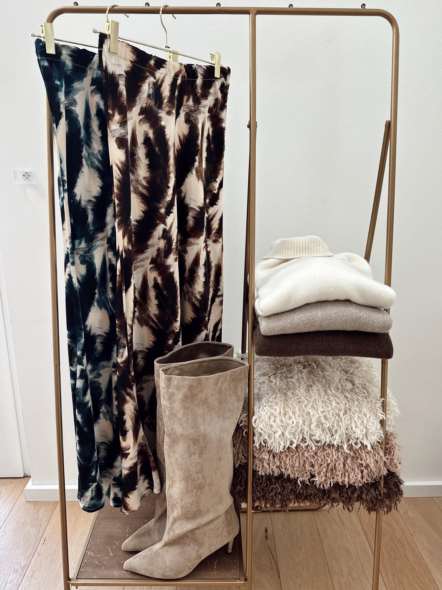 - Long satin skirt