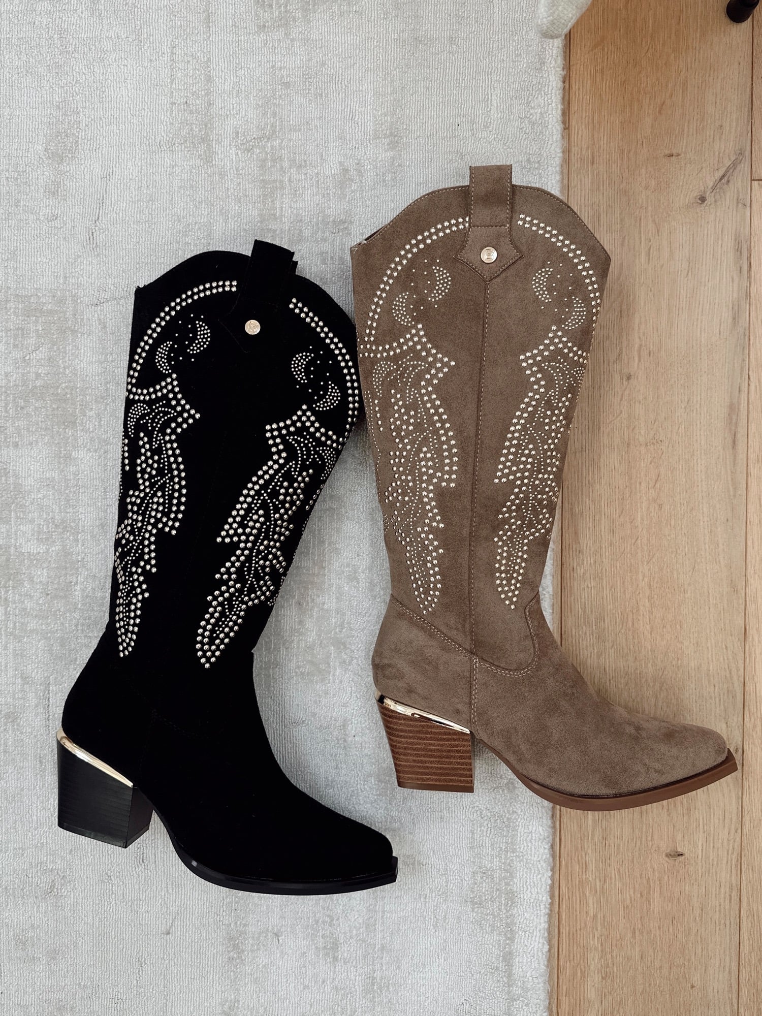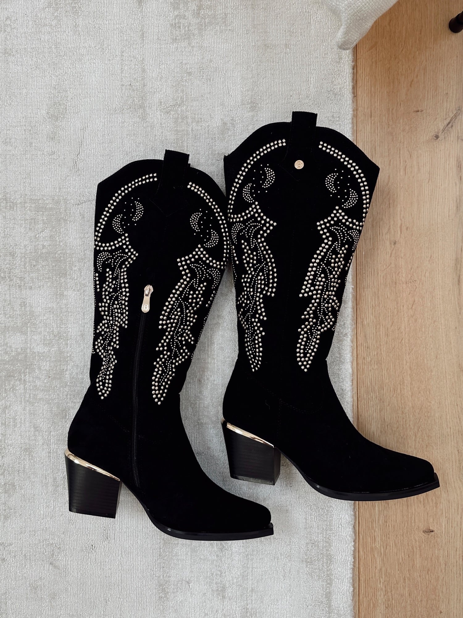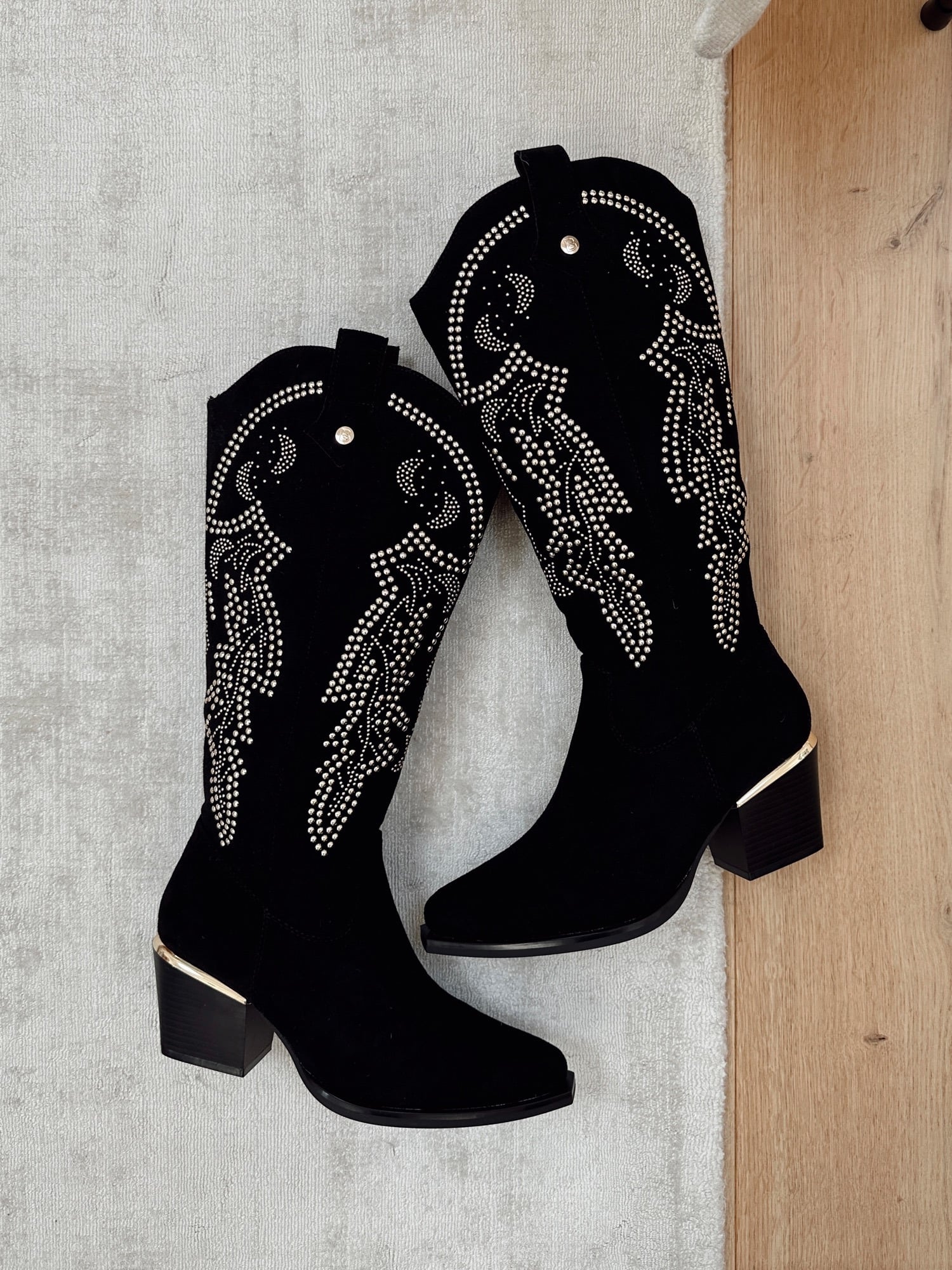 - Santiags en daim à strass dorés